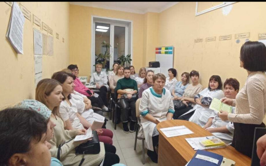 Совместно с заведующим детской поликлиникой Якоб И. И., участковыми педиатрами и медицинскими сестрами обсудили точки взаимодействия друг с другом для работы по предоставлению услуг по ранней помощи.